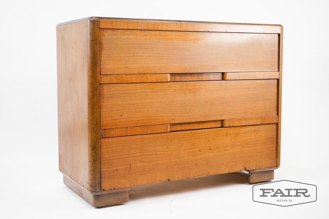 Antique Art Deco Dresser With Mirror Vintage Waterfall Cedar Wood
